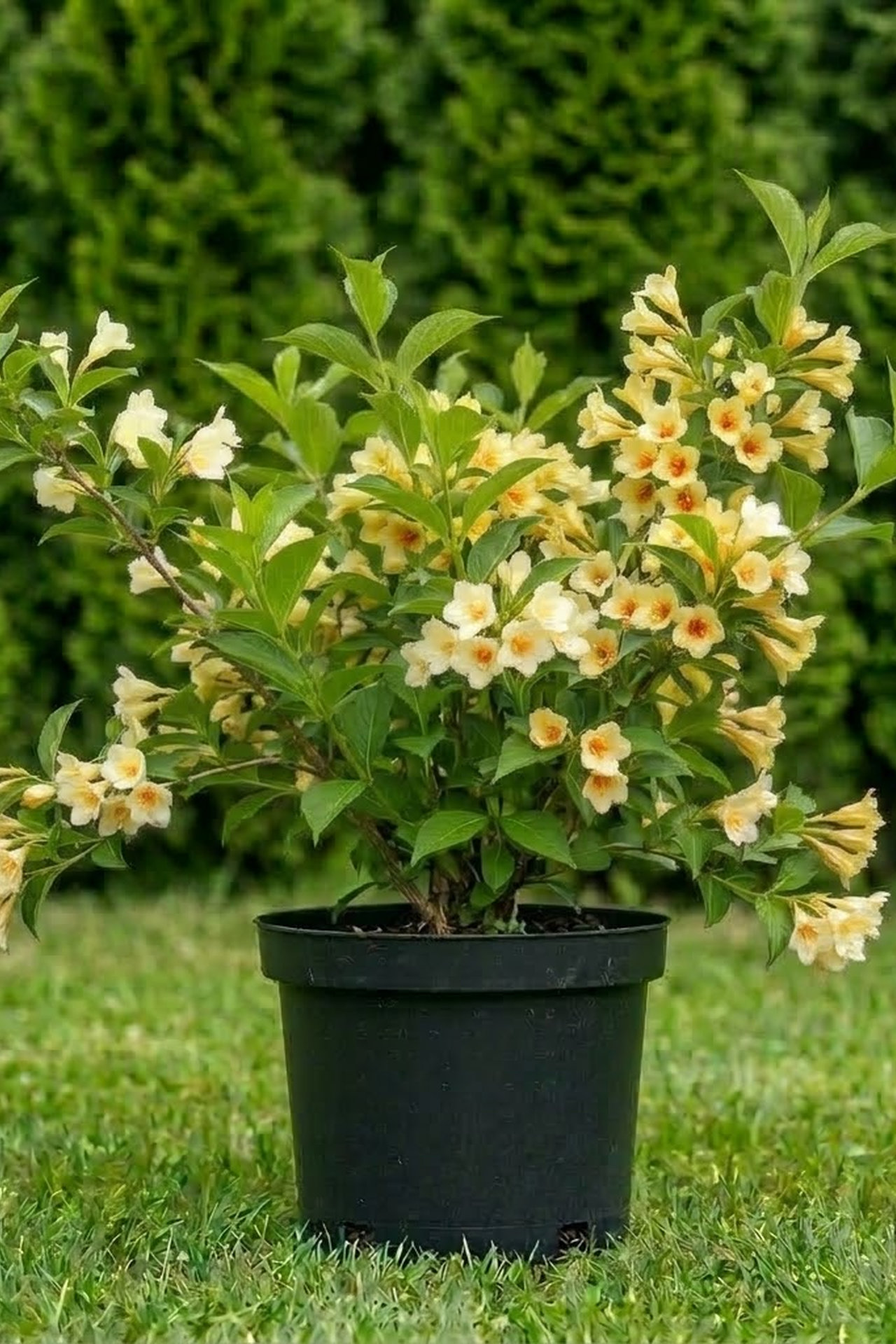 Кустарник двухметровой высоты из семейства жимолостных, родом из Китая, Японии, Дальнего Востока с широко­яйцевидной, почти шаровидной формой кроны. Листья у вейгелы крупные, сидячие, ярко-зеленые, с красноватой окраской вдоль главного нерва. Цветки у вейгелы Миддендорфа желтовато-белые, трубчатые, с пурпурными и желтыми крапинками в зеве, без запаха, одиночные или собраны по 2—6 штук на общих цветоносах. Эффектное ежегодное цветение вейгелы продолжается около месяца до середины мая,