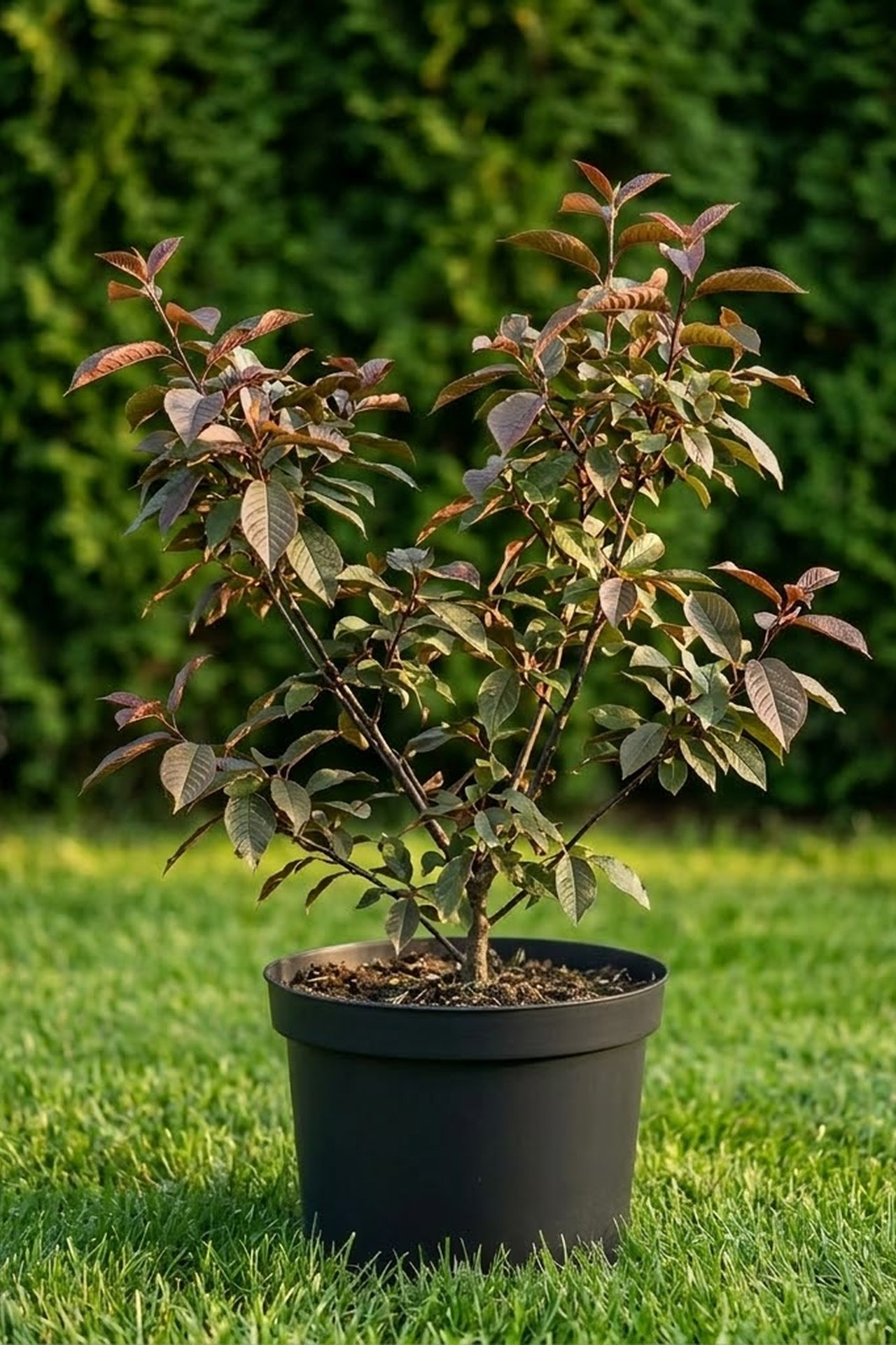 Дерево высотой 5-6 м с округлой кроной. Листья зелёные, с пурпурными жилками, осенью красные. Цветы нежно-розовые, ароматные, собраны в соцветие. Плоды шаровидные, чёрные, блестящие. Зимостойко. Устойчиво к городским условиям.