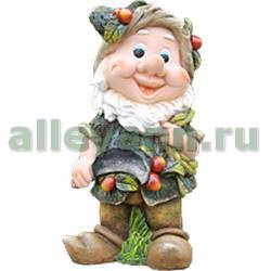 Фигура садовая ГНОМИК С ЯГОДАМИ НА ШЛЯПЕ И КОСОЙ в Костроме