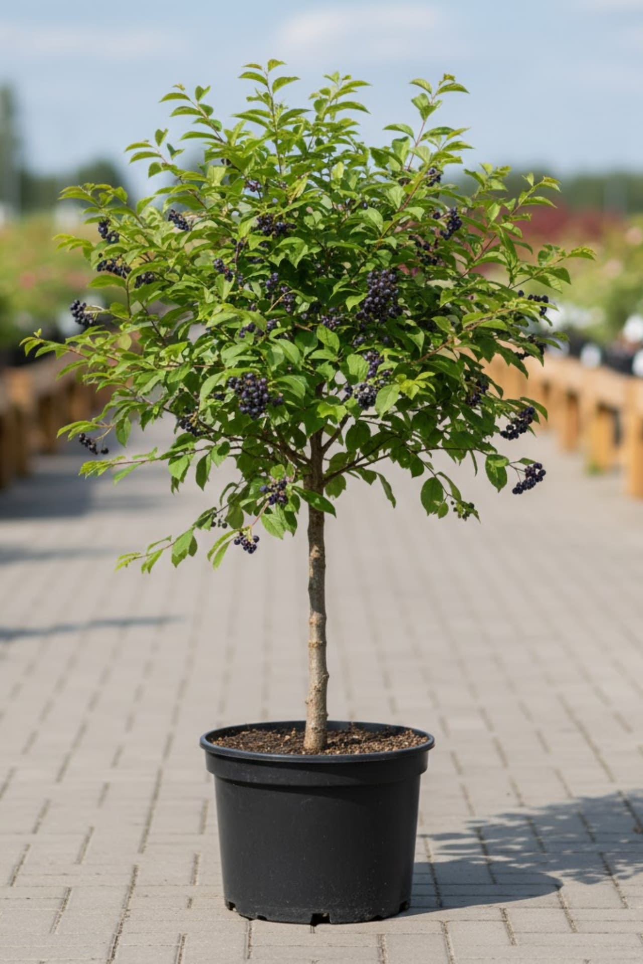 - крупное, высотой 6-7 м, с поникающей широкопирамидальной кроной средней густоты, густо облиственное. Кора серовато-коричневая, шершавая. Побеги направлены вверх, коричневые, толстые, прямые; чечевичек много, светло-коричневые. Вегетативные почки крупные, заостренно-яйцевидные; генеративные почки овально-яйцевидные, прижатые к побегу.