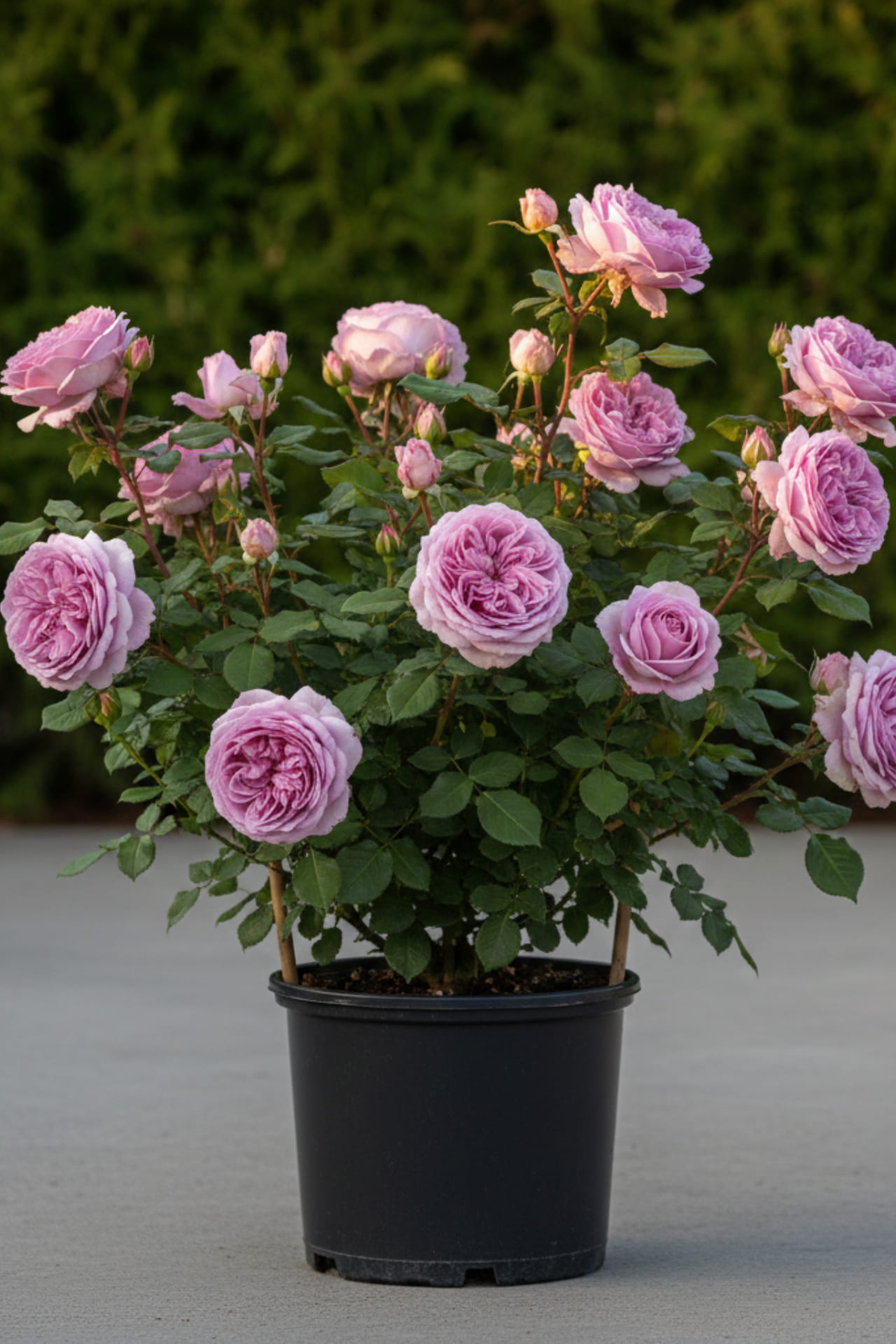 - Цвет – нежно-розовый с сиреневатым отливом. Средний диаметр – 12-14 см. Присутствует мягкий аромат. Цветы густомахровые (до 200 лепестков), чашевидные. Побеги склоняются под тяжестью шаровидных цветов, требуется опора. Цветение повторное, обильное.