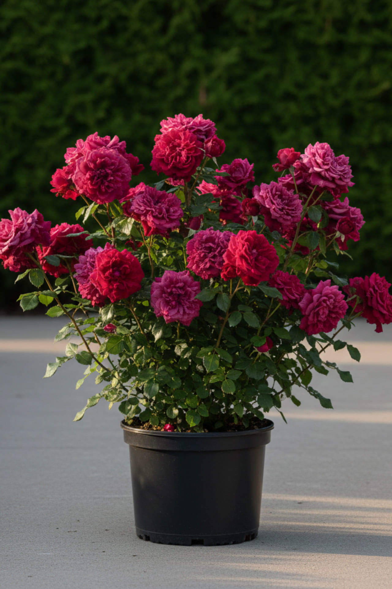 Эта роза настоящее украшение сада, яркий пурпурно-винный цвет и восхитительный аромат. Цветки в кистях до 5-7 штук создают эффект пышного цветения, в полном роспуске у цветка видна серединка. Куст достаточно широкий, листья ярко-зелёные, кожистые, прекрасно смотрится и без цветов. С годами у сорта может быть повторное цветение и он будет радoвать глаз в течении всего лета, при условии достаточного освещения. Очень устойчив к заболеваниям