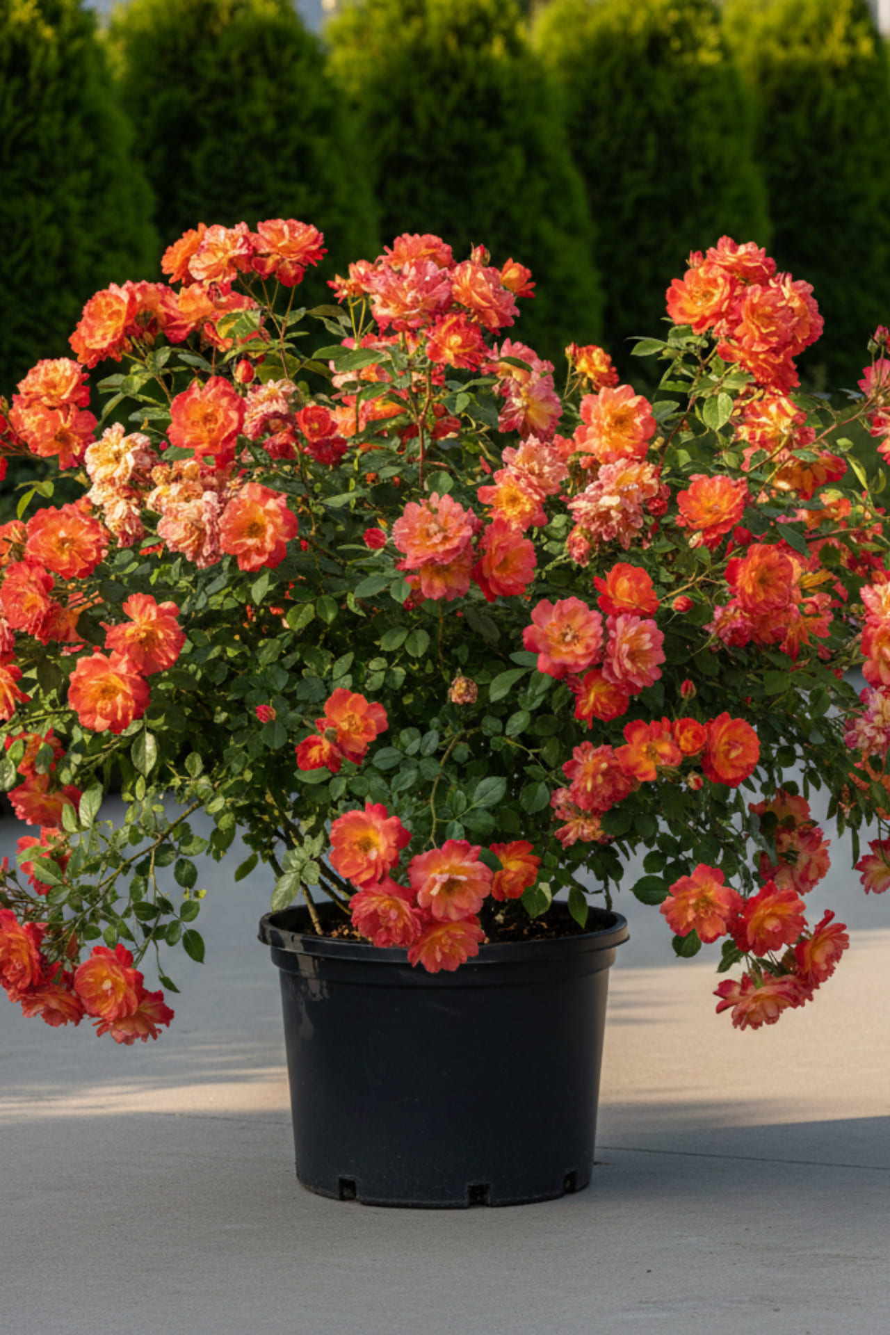 - чашевидный полумахровый цветок достигает около 8-9 см в диаметре. Цветки алые