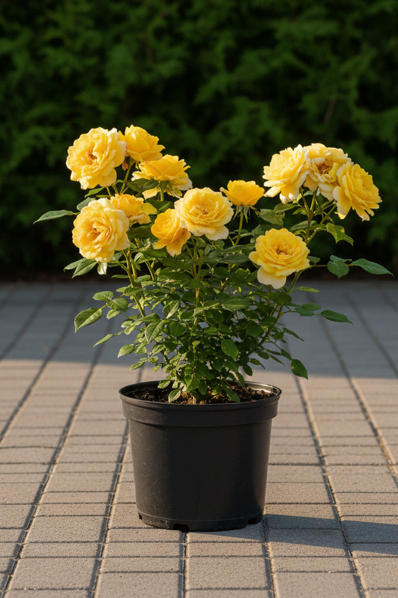 Куст высотой до 1 м, шириной около 80 см. Листья крупные, тёмно-зелёные. Цветы полумахровые, жёлтые, выгорают на солнце до лимонного или кремового. Имеет насыщенный аромат. Цветение раннее.