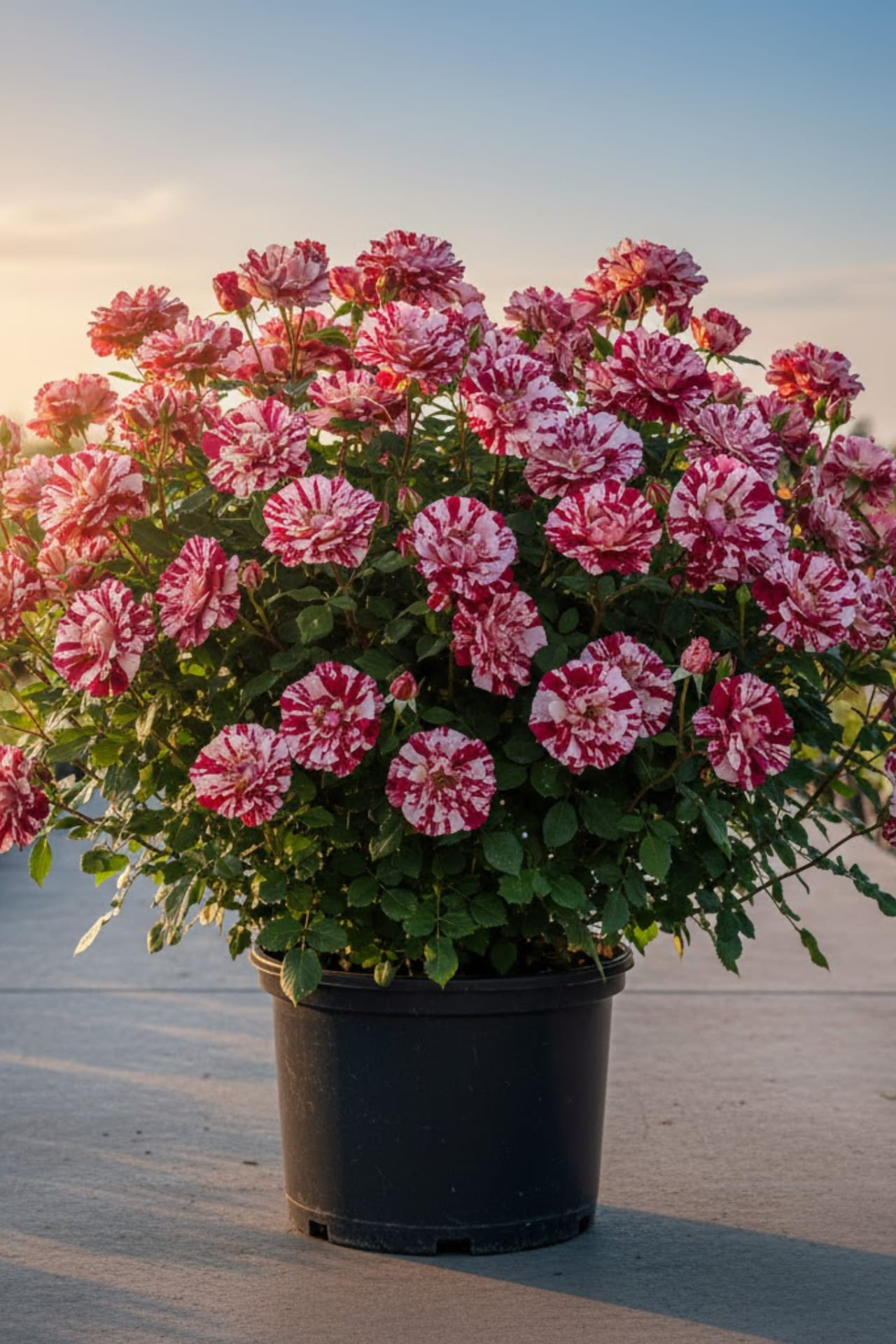 - Цветки кремово-сиреневые с фиолетово-малиновыми, бордовыми, красными полосками и пятнами цветки, чашевидной формы, средне-махровые