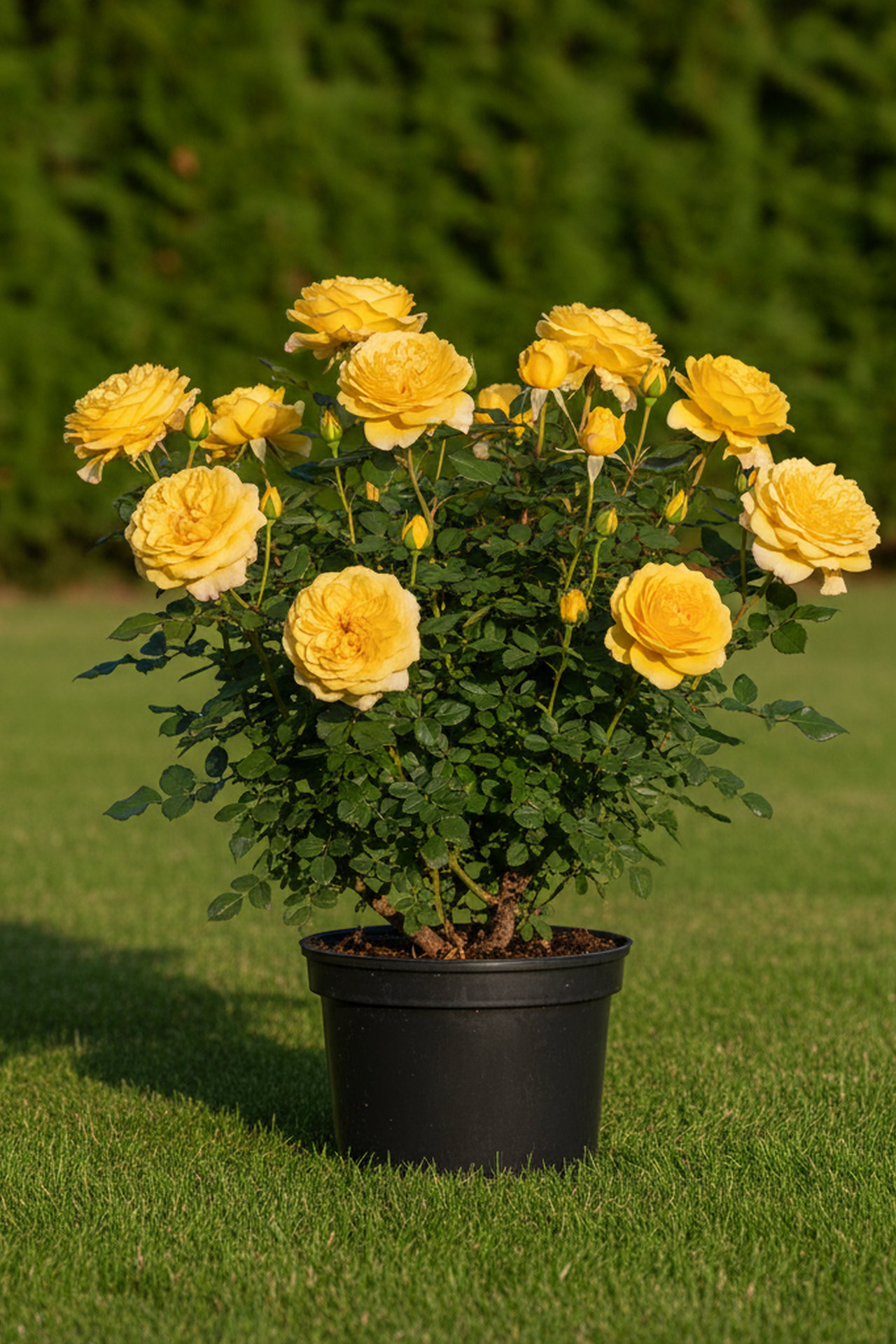 Одна из самых популярных желтых роз. Цветки ярко-желтые, махровые (30-40 лепестков), 9-11 см в диаметре, с легким ароматом. Куст высотой 100-120 см.
